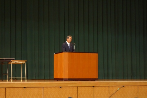 「生徒会役員と学級委員を任命しましたが、選ばれた人と選んだ人、この両者が力を合わせることで、活力ある生徒会活動ができ楽しいクラスができ学校生活が充実するのです。充実した学校生活は、皆さん一人ひとりの行動によって創りだされるものですから、とにかく行動してください。新生徒会役員の皆さんも、全校生徒と力を合わせて、社会から一層高く評価される学校になるようベストを尽くしてくれることを期待しています。