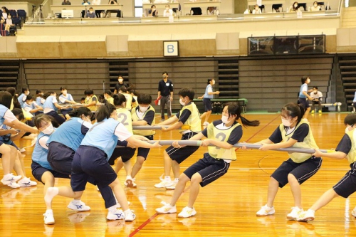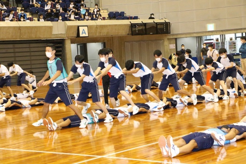 9月8日(水)、グリーンアリーナ神戸で令和3年度体育大会を行いました。コロナウイルス感染症対策として、競技時以外はマスクの着用、競技前後の手指消毒、応援は拍手のみ、昼食は黙食の徹底など十分に配慮した中で行いました。