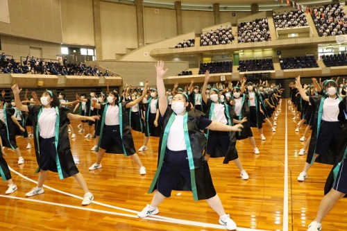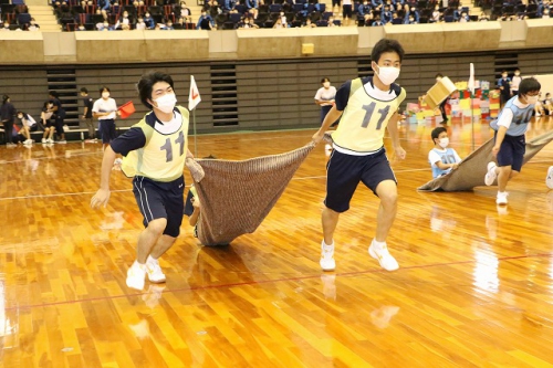 学年対抗での総合成績は、1位2年生、2位3年生、3位1年生との結果になりました。昨年に引き続き新型コロナウイルスの影響で制限もありましたが、順位に関係なく全生徒が一生懸命参加していたことがすばらしく、本当に良い体育大会となりました。最後に校長先生から生徒に向けて「どの学年も本当によく頑張ったと思います。また最後のフィナーレを飾る3年生の学年演技『ソーラン節』は圧巻でした。心に残る体育大会を皆さんの力で作り上げてくれたことを嬉しく思います」との言葉で締めくくられました。