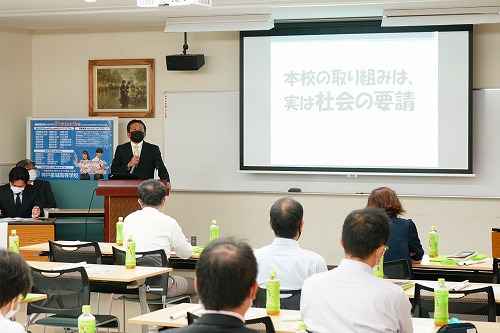 9月17日(金)10時30分から12時までの約1時間30分、学習塾の先生方を対象に令和4年度入試説明会を開催しました。毎年行っているこの説明会は、兵庫県下ので学習塾様を中心に、本校の取り組みをより深く知っていただくために実施しています。
