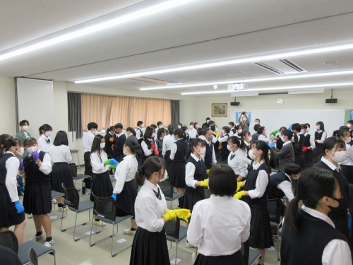 どの生徒も積極的な参加態度で、「参加する前と後ではずいぶん考え方が変わった」「部活動でも取り入れていきたい」「面接試験でぜひ実践していきたい」「2025年の大阪万博ではグリーターとしてボランティアをしたい」などの感想が多数聞かれました。