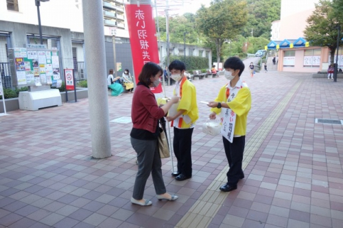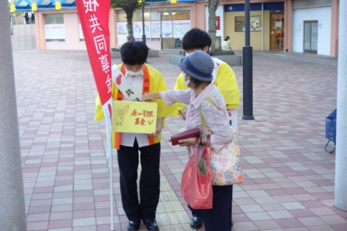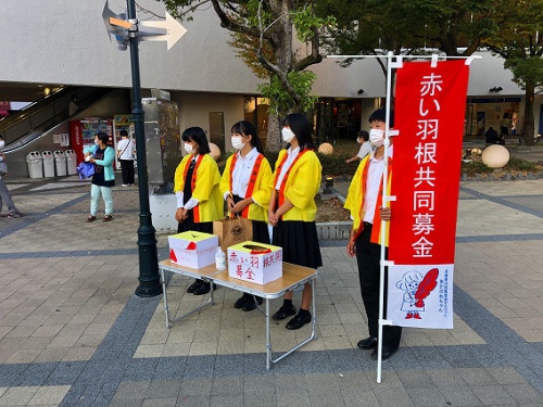 10月6日(水)、生徒会役員と有志のメンバーで赤い羽根共同募金のボランティアに参加しました。放課後の16時から2時間弱かけて妙法寺駅と名谷駅の周辺で街頭募金活動を行い、はっぴを着たり、肩からたすきを掛けたりと生徒たちは積極的に募金活動に取り組みました。