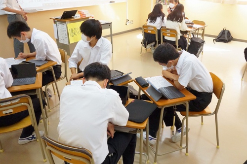 10月9日(土)、特進Sコースの1年生を対象に、株式投資学習「ストックリーグ」へ向けた授業を行いました。ストックリーグは正式名称を「日経STOCKリーグ」と言い、全国の中・高・大学生から毎年計約1800チームが応募しており、筑波大学附属駒場高校・開成高校、同志社大学・東京大学等と名だたる学校が賞をもらっている、コンテスト形式の金融・経済教育プログラムです。ストックリーグに参加するにあたって特に求められるのは「社会・企業を知る」力であり、今日の授業では実際の企業の株に関する資料等を使いながら、PER(株価収益率)やPBR(株価純資産倍率)といった指標の見方など、銘柄をスクリーニング(選定)するために必要な知識を学びました。