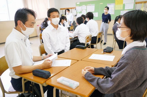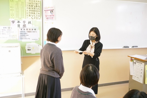 最初に、夏休みの宿題で課題になっていた渋沢栄一の「論語と算盤」の読書感想文について、授業の講師としてお越しいただいた経営者の方より優秀者へ表彰をしていただきました。その中で「商売というのは、自分のためだけでなく周りの人をいかに幸せにしていくかが大事であるということを、この本を通して理解してくれたことが嬉しい」とお褒めの言葉をいただきました。