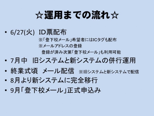 ○6/27(火)ID票を生徒に配布。メールアドレスの登録開始