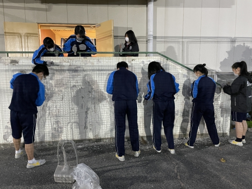 11月17日(水)の放課後、生徒会が発案した清掃活動に、計58名(1年30名、2年28名)の有志生徒が参加し、学校内・体育館の修繕や、通学路・妙法寺駅周辺・地域の道路を清掃しました。外は日が落ち始める頃で、肌寒く感じる中での清掃でしたが、集中して黙々と取り組み、達成感・充実感のある活動となりました。周辺地域への理解・関心を深めるとともに、普段から町や校内施設をきれいに利用する意識を高めました。