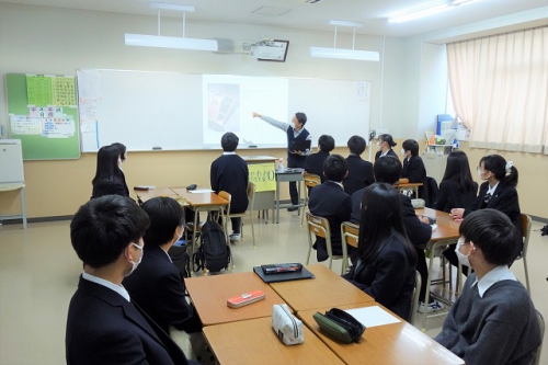 12月1日(水)、特進Sコースの1年生を対象に、第6回目となる「経営者によるレクチャー」が開講されました。これまで一般社団法人関西ニュービジネス協議会の副会長で、八戸ノ里ドライビングスクールの代表取締役でもある谷岡樹氏に講師としてお越しいただき授業を行っていましたが、今日で最終回となりました。
