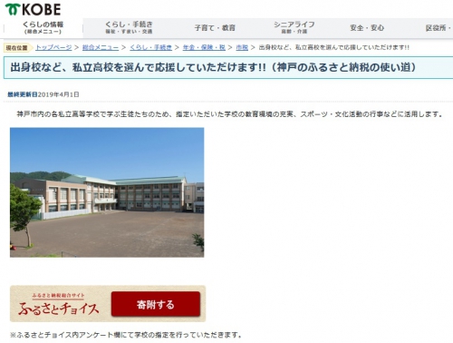 私立高校へのふるさと納税サイト(神戸市のHP)