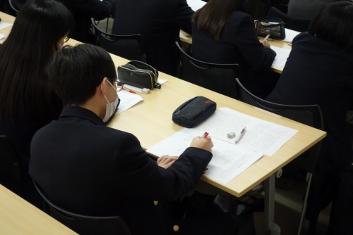 12月16日(木)、大学進学者の3年生を対象とした「大学入学準備講座」の第1回目を実施しました。この講座では来年の春から大学生になる3年生が、これから大学入学までに身に着けておくべき内容に取り組む予定で、今日から来年の1月にかけて冬休み期間中も含め、継続的に開講されます。