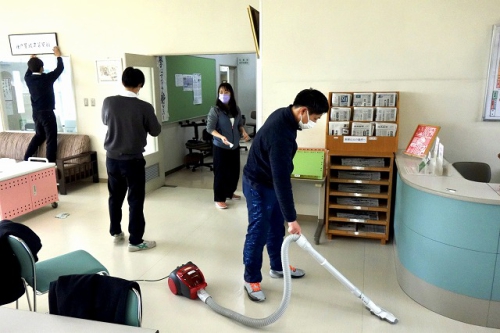 御用納めの本日の午後、神戸星城高校の大学進学者の恒例行事となっている自学自習室の大掃除を行いました。大学入試準備講座が午前で終了し、昼食を終えた生徒たちが参加しました。小論文添削に面接練習と、日頃から指導してくださっている進学担当の先生方も参加しての清掃活動です。普段使っているライブラリーへ感謝の気持ちを込めて取り組みました。掃除した後は、参加者全員で集合写真を撮って解散となりました。