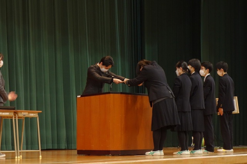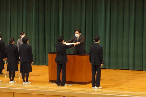 始業式の後、続けて表彰伝達式を行いました。副校長より、優秀な成績を残した運動部・文化部や各分野で活躍した団体・個人に表彰と労いの言葉がありました。