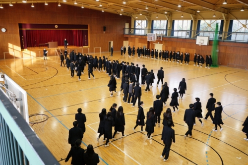 1年の始めに当たって、皆さんが自分を大切な存在であると自覚し、自分はやればできるという自己肯定感を持って、自分に与えられた役割を担いながら、自分の人生を自分の力で作り上げていくという前向きな気持ちを強く持ってもらいたいと思います。クラス仲間をお互いに大切にし、違いを認め、良さを尊重し、縁があって集まった者同士、一生の友として良い人間関係を作り、意味のある高校生活を送ってください。」