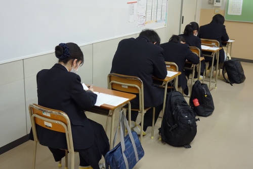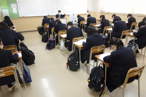 1月15日、16日に2022年度大学入学共通テストが実施され、本校からも多くの受験生が試験会場に向かい受験しましたが、その後を追う形で、特進Sコース1・2年生の生徒は本日2月5日(土)の土曜活動において、大学入学共通テストの体験受験を行いました。実際の共通テストの問題に取り組むことで、出題される問題の傾向をつかみ、対策を始めるきっかけとしました。