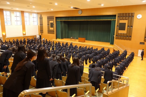 まず「春休み中の計画を立てる」ということです。計画を立てることによって無駄な時間が減り、充実した日々が送れます。次に、健康であることです。何をするにも体力が必要です。就寝時刻、起床時刻を一定にして規則正しい、リズムのよい生活を心がけ、適度な運動をしてください。この春休みという機会に、小説、随筆などを読んで、文学に慣れ、知識を豊富にし、自分の考えや意見を身につけ、小論文や作文が書ける力と面接に対応できる力を養ってください。そして勉強と遊びのけじめをつけ、3年間しかない高校生活の一日一日を大切に過ごすことが大切です。