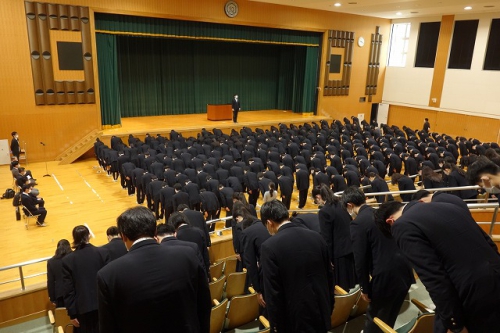新3年生は4月1日(金)から4日(月)の3泊4日で、心待ちにしていた北の大地「北海道」への修学旅行に出発します。それに先立ち3月29日(火)、本校講堂で「修学旅行結団式」を行いました。