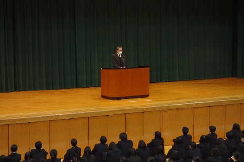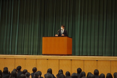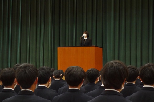 「修学旅行が予定通りになかなか行えずにいましたが、やっと実施できるという状況になりました。蔓延防止等重点措置が解除になったとはいえ、感染者数がそれほど減っているわけではありません。十分な感染防止対策をとる必要があるということは忘れないようにしてください。修学旅行で大事なのは、見分を広めたり、周りの友達と友情を培うことです。また旅先で様々な職業の方々と出会い、学校では学べないことを学び、自分の将来について考えるきっかけにしてください。」