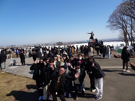 今日の予定は、クラーク像で有名な羊ヶ丘展望台での記念撮影、小樽での班別自主研修、その後、3班に分かれて、飛行機で帰路につきました。関西空港着のB班には遅れが出ましたが、全員無事に帰神できました。