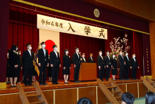 「新入生の皆さん、入学おめでとうございます。保護者の皆様、お子様のご入学、誠におめでとうございます。心よりお慶び申し上げます。春の花々が美しく咲いている本日ここに、令和4年度の入学式を367名の新入生を迎えて、各ご家庭1名に制限の中ではさせていただきましたが、保護者の皆様にご参列いただいて挙行できますことを誠にうれしく存じます。