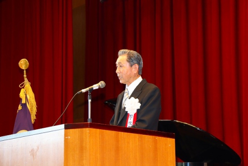 新入生の皆さん、今日は、皆さんにとって最も意義深い節目の日です。竹は節があるから、強くしなやかに育ちます。人間も、人生の節目がしっかりしている人ほど、大きく成長すると言われています。新入生の皆さんは、入学という大きな節目の日に目標を定め、夢と希望に向かって様々なことに挑戦し、充実した高校生活を送ってくれることを願って入学式の式辞といたします。」