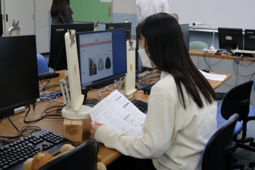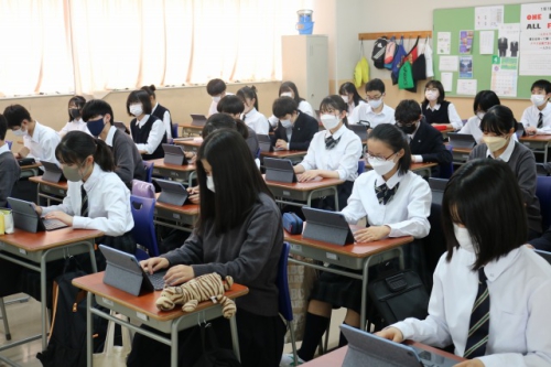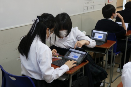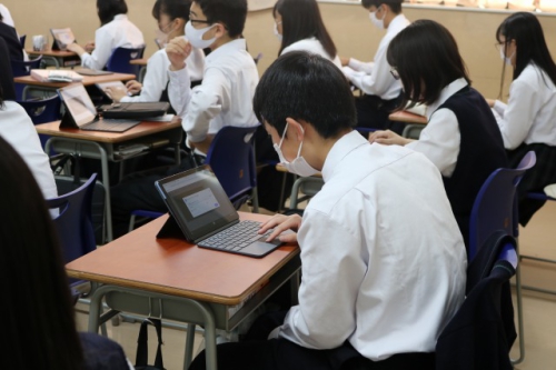 1年生のポートフォリオ作成では、これから新しく自身の学習計画や学習進度、また趣味などを記録するために担任の先生からポートフォリオの活用方法を教わり、実際に自分のページを作成し始めました。授業中には周りのクラスメイトに対して作成方方を教えたり、作成したページをお互いに見せ合ったりする姿もありました。