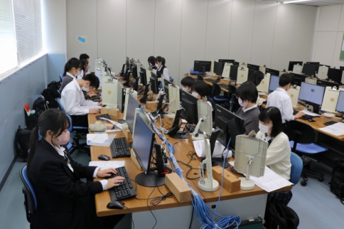 また2年生の課題研究学習では、現代の高齢化社会における問題点を挙げながら、独居老人や孤独死、定年退職後生きがいをなくした高齢者に対して地域でどのような社会的支援を行うことができるか、高齢者にとってどのような社会システムがあればより良い生活を送ることできるか、について考えました。それを踏まえてビジネスと関連付けながらパソコンで調べ学習をし、実際にプランニングを行いました。
