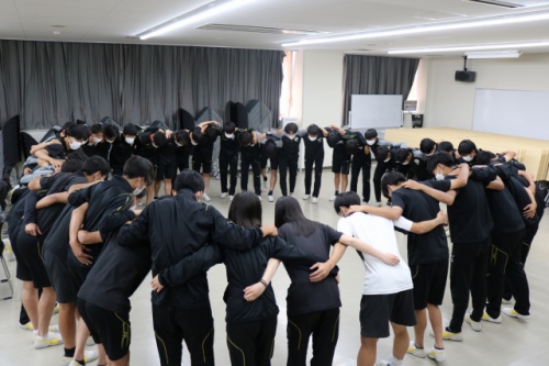 チームミーティング後には3年生だけで決起集会を行い、最後に円陣を組み、翌日の試合にへ向けて活を入れ合いました。