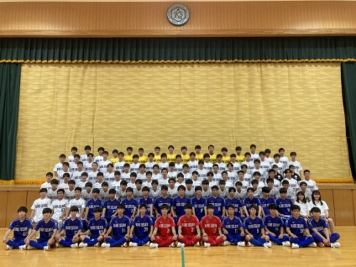 主顧問によるメンバー発表・激励から始まり、各副顧問・コーチから翌日の大会に向けた激励の言葉がサッカー部部員全員に贈られました。 主顧問からは「今回の相手は格上のチームだ。試合に出るメンバーだけでなく、全部員133名が各々の役割の中で持てる力を発揮してチーム力で挑んでいこう」と熱い言葉をかけました。最後は全部員でサッカー部のスローガンである「TEAM!」に思いを込め声出しをし、チームの士気を最高潮まで高め、試合に向けて結束を強めました。