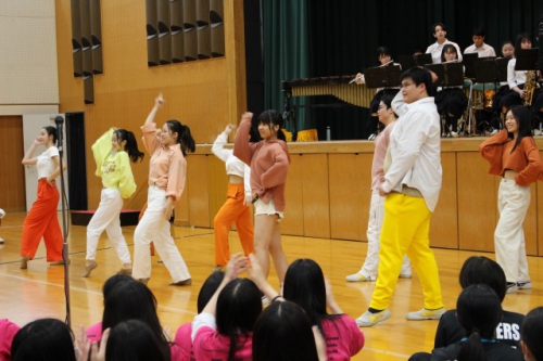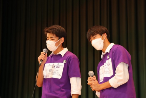今年は「繋がる輪」というテーマに合わせて、多くのプログラムが実施されました。1日目は音楽部と女子ダンス部"IBIS"のコラボレーション企画から始まり、全体でのクイズ大会やビンゴ大会、歌うま王座決定戦の予選などが行われました。講堂から各教室へリアルタイムで映像配信をすることで、全校生が同じ時間・空間を共有することができました。