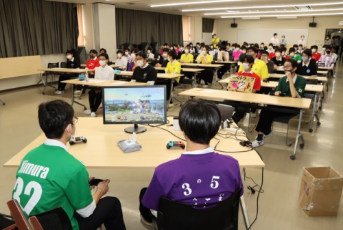 今年度からは新しく「eスポーツ大会」が開催され、参加者は事前エントリー制での募集でしたが、非常に多くの生徒の参加がありました。“大乱闘スマッシュブラザーズ”での対戦が行われ、生徒だけに留まらず先生たちも含め多くのギャラリーが参加会場である教室に集まり、終始白熱した対戦が繰り広げられていました。