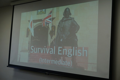 「パスポートのいらない英国体験」を掲げているだけあって、先生方は当然ですが、日本人スタッフもすべて英語で対応します。まずはオリエンテーションで施設案内とルールの確認を行い、その後1つ目のレッスンを受けました。内容はサバイバル・イングリッシュというもので、英語圏で生き残るために簡単な英単語で設定されたミッションをクリアする授業です。チームごとで競い合い、盛り上がりました。