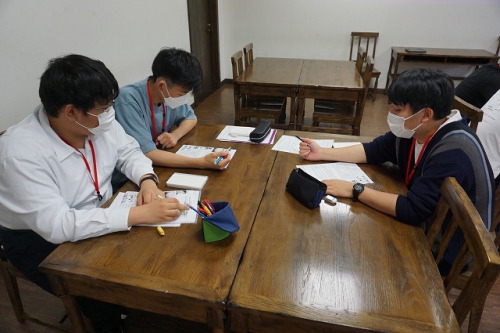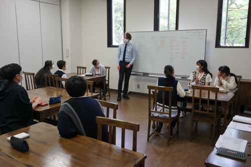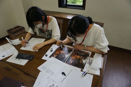語学研修第2日目は、朝から晩まで英語漬けで学習しました。90分×4レッスン、テーブルマナー講習、夜のフリータイム活動、売店での買い物まで、すべてが英語で行われました。特に、Sherlock HolmesとRAVENというレッスンは、論理的思考力と批判的思考力を英語で高め、そして話す訓練を行いました。批判的思考力とは決して相手を否定するために考えることではなく、自分の思考、他者の思考に矛盾がないかを確認しながら話の筋を立てていく練習です。慣れない中ではありましたが、充実した時間を過ごすことができました。