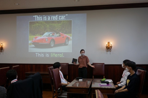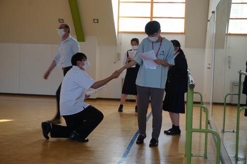 また、本日は新しいレッスンが3つありました。「Music & Metaphor」では、英語の歌詞を題材に文字通りの意味と比喩・隠喩表現を知り、コミュニケーション・スキルの向上を図り、同時に文化的違いを知り、異文化理解につなげるきっかけ作りをしました。「Top Fives」は、グループごとに好きなものTop 5を説得的に英語でプレゼンするレッスンでした。「Shakespeare」ではイギリスの劇作家、ウィリアム・シェイクスピアの代表作、「ロミオとジュリエット」を演じることにより、物語の話だけではなく、人間関係や、その背景について学ぶことができました。