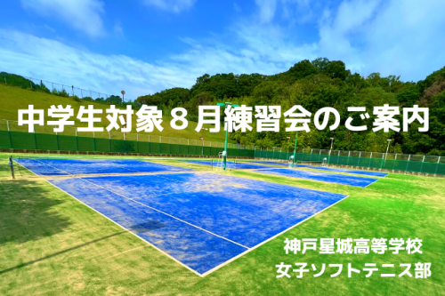 中学生対象8月練習会のご案内~女子ソフトテニス部~ ■2022-08-07 写真は、自動的にスライド表示されます (ドラッグしてスライドも可) 2022年度女子ソフトテニス部中学生対象練習会を来月8月16日(火)、20日(土)に行います。 ◇練習会のご案内 ※申し込みはPDFファイル上のアドレスをクリックしてもできます。 ◇練習会お申し込み 皆さんからの多くの参加申込をお待ちしております。