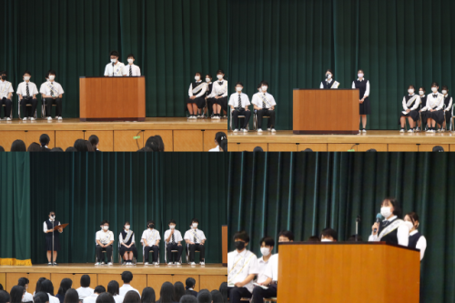 2年生4名、1年生5名の生徒会役員立候補者とそれぞれの応援弁士が全校生徒に熱いメッセージを送り、立候補者の意欲を示しました。演説では立候補者・応援弁士ともに謙虚で元気のある力強い演説を行い、また立候補に至った理由、どんな学校にしていきたいかなどについて、具体的な取り組みを含めた心のこもった演説に「星城をもっと良くしたい」という愛情と頼もしさを感じました。