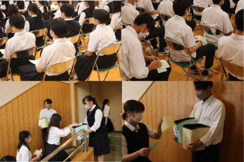 7月13日(火)、次期生徒会役員を決める生徒会役員改選を行いました。「応援弁士と立候補者の演説を聞いて、生徒会役員に相応しいと思う人をしっかり考えた上で投票してください」と、3年生の現生徒会役員による司会で始まりました。