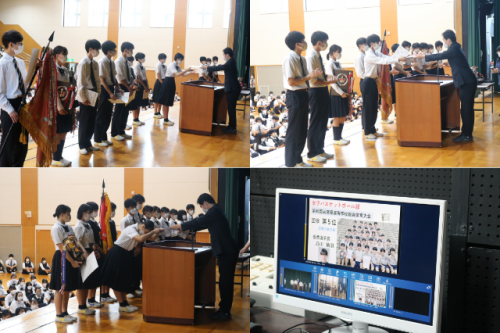 7月20日(火)、1学期終業式に引き続き表彰伝達式・部活動壮行会を行いました。表彰伝達式では各クラブ・個人の健闘に対し、副校長から表彰と労いの言葉がありました。